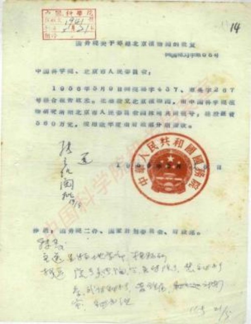 2021年12月28日,国务院批复同意在北京设立国家植物园,由国家林草局、住房城乡建设部、中国科学院、北京市人民政府合作共建。